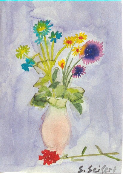 sind mit Aquarell-, Acrylfarben oder als Collagen gefertigt.